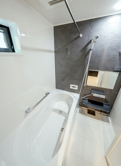 水まわりには、タカラスタンダード製のシステムバスを採用。防水性・防汚性に優れ、お手入れのしやすさも魅力です。さらに、開放感あふれる大型のL字型ルーフバルコニーを備え、洗濯や家庭菜園、机やイスを置いて家カフェなど、様々な楽しみ方が可能です。