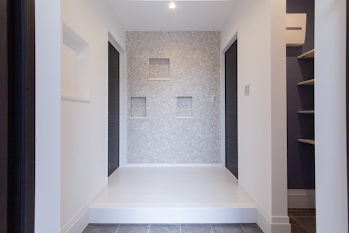 玄関にはシューズクローゼットを備え、玄関まわりをすっきりとした印象に保てます。