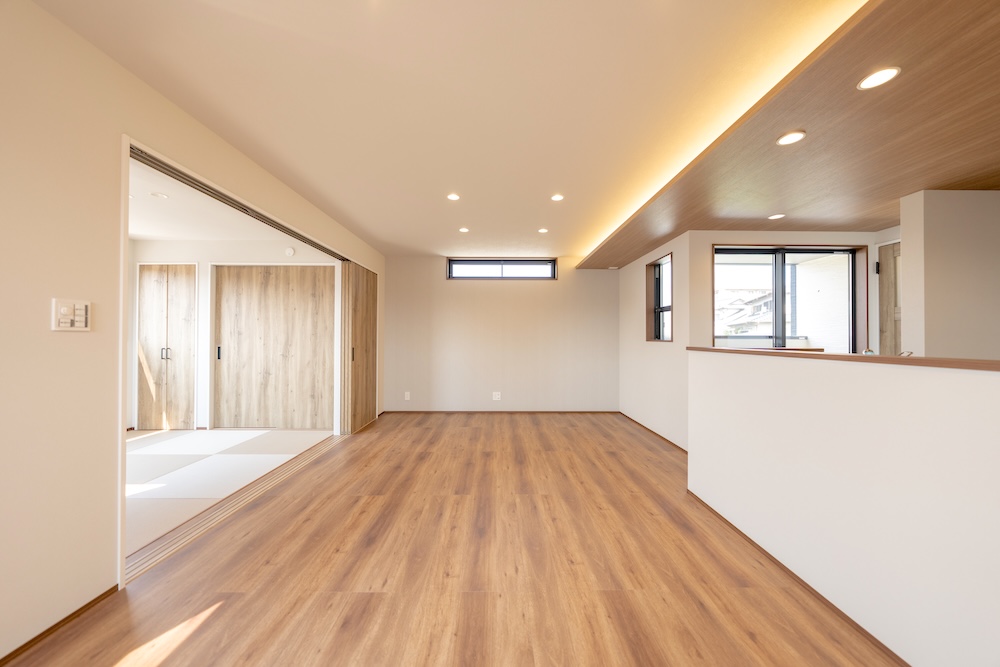 その長住に完成した新築戸建は、4LDK・2階リビングの設計。リビング横には和室を備え、家族の憩いの場や客間としても活用できます。キッチンはLIXIL製を採用。食洗器設置、人造大理石のワークトップなので日々のお皿洗い、キッチン掃除の負担が軽減されます。